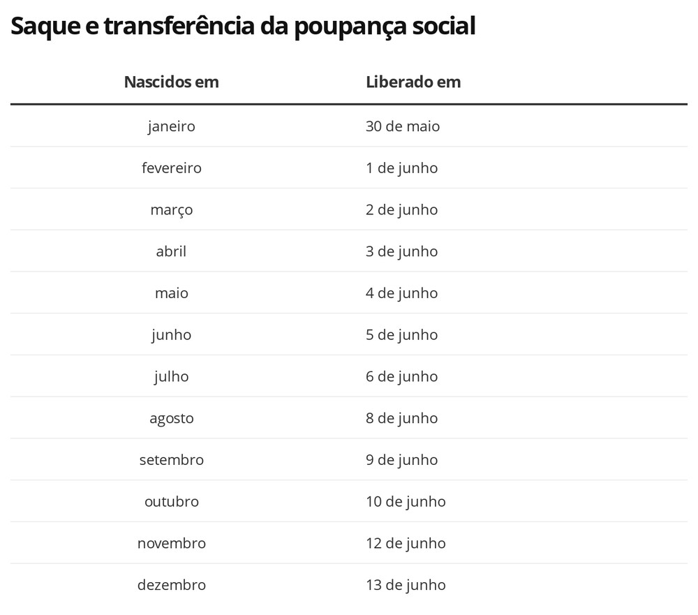 As liberações começaram no sábado e seguem um cronograma ligado ao mês de nascimento do trabalhador. Até a data de liberação, os recursos já depositados nas poupanças podem ser usados apenas para pagamento de contas, de boletos e compras por meio do cartão de débito virtual.