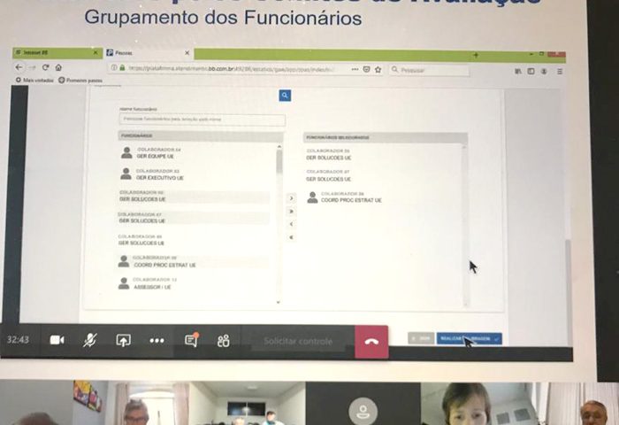 30 de julho de 2020Na última terça-feira (28), a gerente de soluções do Banco do Brasil, Inês Maria Saldanha de Matos Neves Lima, fez apresentação, por videoconferência, das novas regras para a GDP (Gestão de Desempenho Profissional) e do PDG (Programa de Desempenho Gratificado) para aproximadamente 40 dirigentes sindicais, entre os quais, representando os sindicatos vinculados à Feeb/PR, Carlos Kravicz (Seeb Ponta Grossa), Antonio Ribas Maciel Jr. (Seeb Cascavel) e João Haroldo (Feeb/PR).