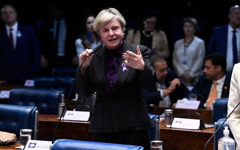 Plenário do Senado Federal durante sessão deliberativa ordinária. Na ordem do dia, PEC 66/2023 que "abre novo prazo de parcelamento especial de débitos dos municípios com seus Regimes Próprios de Previdência Social dos Servidores Públicos e com o Regime Geral de Previdência Social". Em pronunciamento, à bancada, senadora Margareth Buzetti (PSD-MT). Foto: Jefferson Rudy/Agência Senado