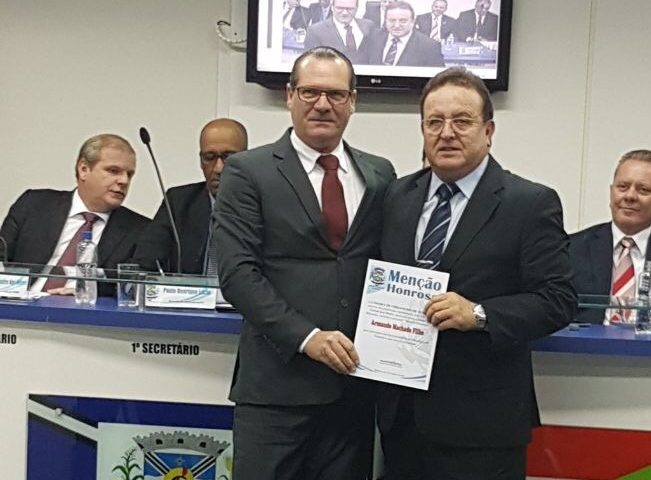 No dia 17/08/2017 (5ª feira), as 19 horas, o presidente do Sindicato dos Bancários de Tubarão e Região – Armando Machado Filho, presidente do Sindicato Dos Bancários de Tubarão e Região, recebeu homenagem na Sessão Solene de entrega de Menção Honrosa na Câmara de Vereadores de Tubarão.
