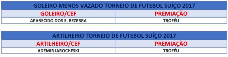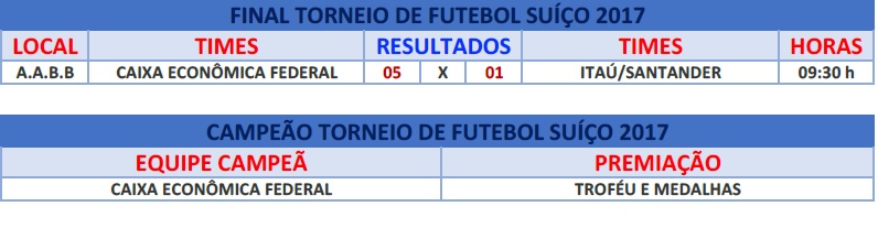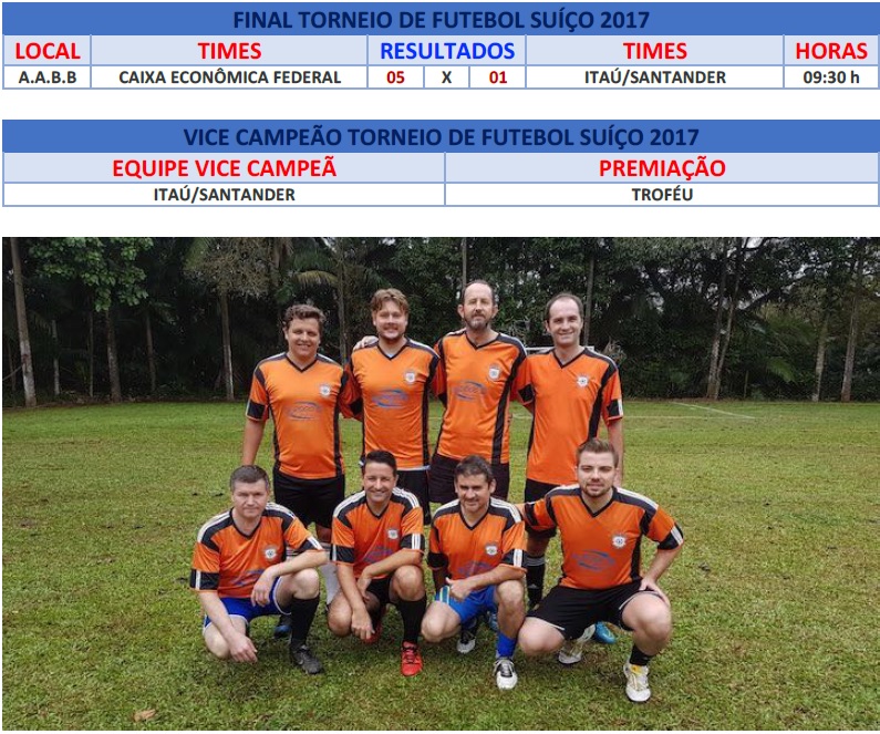 RESULTADOS FINAIS DO 3˚ TORNEIO DE FUTEBOL SUÍÇO 2017, EVENTO REALIZADO PELO SEEB JARAGUÁ DO SUL E REGIÃO SC.