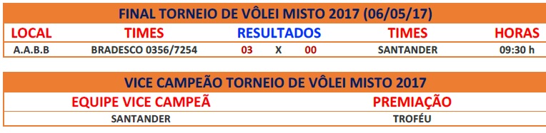 SEEB JARAGUÁ DO SUL E REGIÃO – RESULTADOS FINAIS DO 3˚ TORNEIO DE VÔLEI MISTO 2017