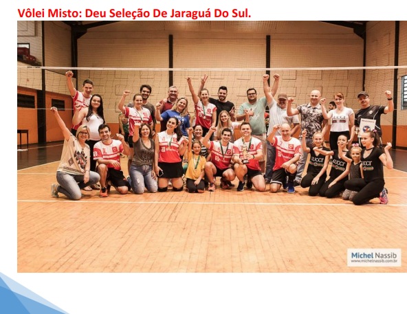 Às 8h30 iniciou o jogo de Voleibol Misto entre ambas seleções, num clima de muita alegria e disposição para vencer. A seleção de Joinville foi guiada por Sandro Pereira, Diretor do Bancários Joinville e Bancário do Itaú, tendo como base atletas do banco Itaú. Após três emocionantes sets, Jaraguá do Sul, coordenada pelo Diretor do Sindicato dos Bancários de Jaraguá Do Sul e Funcionários do Bradesco Sr. Noilton C. Murara e por uma equipe tendo como base principal atletas do banco Bradesco e Itaú onde levou a melhor. “Estamos querendo trazer as mulheres Bancárias para nossas competições. Possuímos um campeonato de futebol masculino de altíssimo nível. queremos a participação delas em nossa nova gestão”, lembrou Valdemar.
