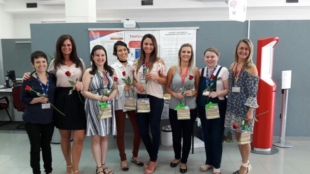a entrega de lembrança em comemoração ao Dia Internacional da Mulher.